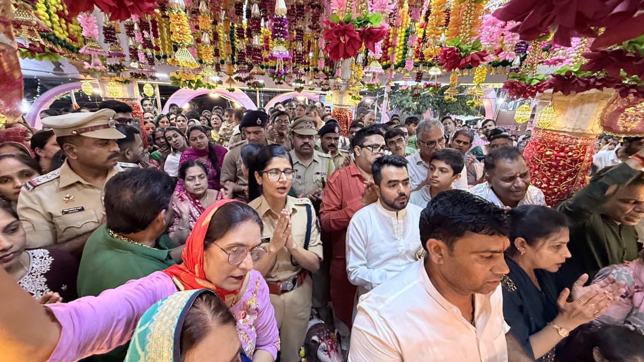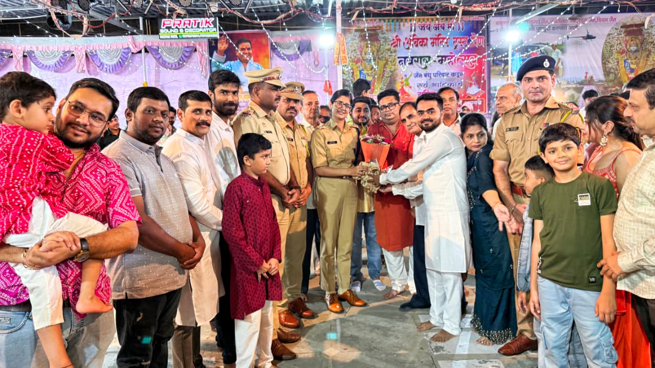रायगड जिल्ह्यात गुन्हेगारीवर लोखंडी मुठ ठेवणाऱ्या, डॅशिंग कामगिरीसाठी प्रसिद्ध असलेल्या पोलिस अधीक्षक आँचल दलाल यांनी पेण येथील श्री अंबिका माता गरबा उत्सवात हजेरी लावून सगळ्यांचे लक्ष वेधून घेतले. नागरीक आणि पोलिस प्रशासन यांच्यातील दरी भरून काढण्यासाठी नवरात्रीच्या उत्सवात जिल्हा दौरा काढून नागरीकांशी विविध मुद्द्यांवर चर्चा केली.पेण विभागात सामान्य माणसांना भेडसावणाऱ्या प्रश्नांचे निराकरण करण्यासाठी जिल्हा पोलिस अधिक्षक आँचल दलाल यांनी गर्दीचे ठिकाण शोधले. पेण येथे जागृत देवस्थान असलेल्या श्री अंबिका माता मंदिरात आरतीसाठी शहतील महिला व पुरुषांसह तरुणवर्ग हजेरी लावतो. त्यानुसार रात्री ८.३० च्या दरम्यान जिल्हा पोलिस अधिक्षक आँचल दलाल मंदिरात पोहचून जनतेसोबत चर्चा केली. तसेच तुमचे प्रश्न जाणून घेत ते सोडविण्यासाठी माझे दालन खुले असल्याचे त्यांनी सांगतिले. यावेळी त्यांच्या सोबत पेण विभागीय पोलिस उपअधीक्षक जालिंदर नालकुल, पेण पोलिस निरीक्षक संदिप बागुल,जिल्हा वाहतूक पोलीस निरीक्षक अभिजित भुजबळ, पोलीस उपनिरीक्षक नीलेश राजपूत उपस्थित होते.श्री अंबिका मंदिरात गरब्यासाठी श्री अंबिका मंदिर ट्रस्ट तर्फे रायगड पोलीस अधीक्षक आँचल दलाल यांना आग्रह केल्यानंतर कडक शिस्त आणि जबाबदारीचे ओझे जपणाऱ्या या अधिकारी जेव्हा या उत्सवात स्वतः उतरल्या तेव्हा उपस्थित नागरिकांनी जोरदार टाळ्यांच्या गजरात स्वागत केले. रायगडकरांसाठी आदर्श ठरत असलेल्या या महिला अधिकाऱ्यांनी पुन्हा एकदा दाखवून दिलं की खाकी म्हणजे फक्त कायदा आणि सुव्यवस्था यांचीच अंमलबजावणीच नाही तर जनतेशी मनाने जोडलेली ताकदही आहे! यावेळी श्री अंबिका मंदिर तर्फे शा.बाबुलाल साखळचंद जैन, शा.जयंतीलाल साखळचंद जैन,शा.राहुल बाबुलाल जैन,शा.चिराग दिनेशकुमार जैन,शा.यश मनोज जैन या जैन बंधू तर्फे अधीक्षक आँचल दलाल यांचे शाल श्रीफळ पुष्पगुच्छ देऊन सत्कार केला.यावेळी पेण शहरातील मोठा जनसमुदाय उपस्थित होता.
